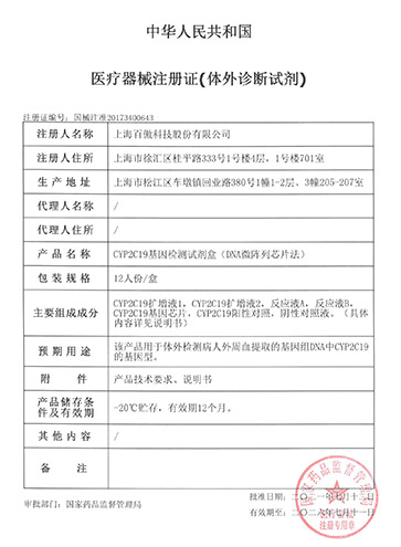 (1)指导抗血小板聚集治疗药物氯吡格雷(波立维、泰嘉、新帅克)的个体化给药(美国FDA对该药做出一级黑框警示)